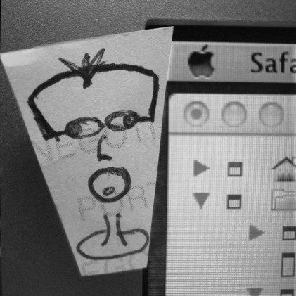 Arriving at the office on any given morning, I might find that someone has attached a lovely portrait of me to my monitor.
