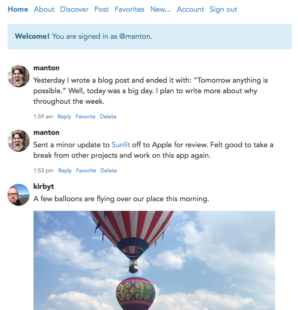 Manton Reece recently shared the following Sneak peek screenshot of his upcoming microblogging app.
