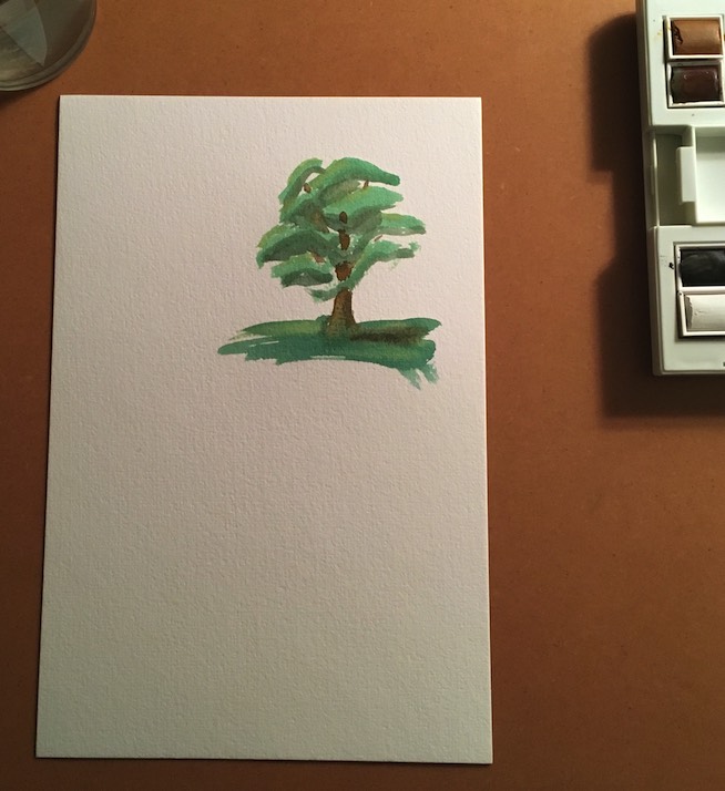 I’ve been experimenting with watercolor painting. It’s not going well, but I refuse to give up quite yet. Yesterday I painted a tree, for practice. It’s not a good tree, but I’m happy that I can tell it’s a tree.