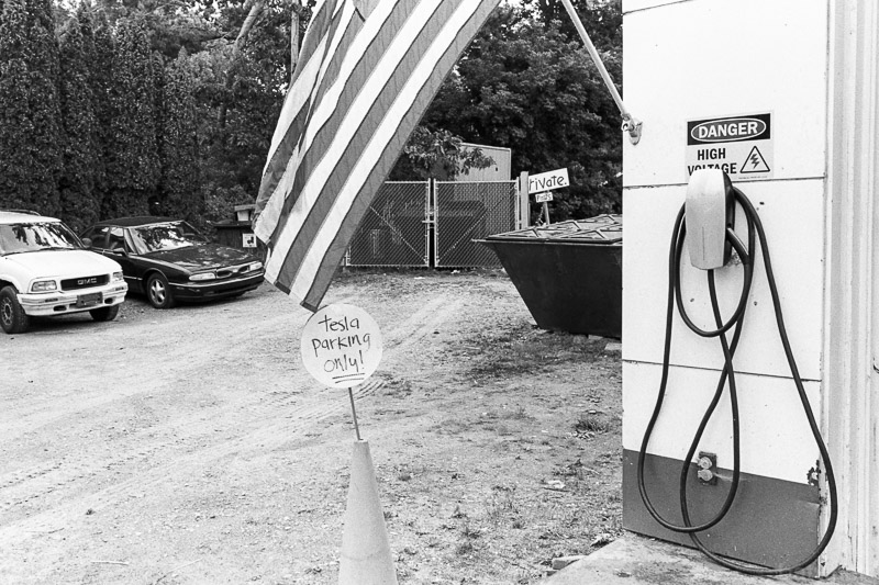 Tesla Parking Only Jack Sunday, Oct 9, 2016 22 words One minute I wonder how often this is a problem for them? Tesla Parking Only (2016). Nikon F3. Tri-X in HC-110 dilution B 6min.
