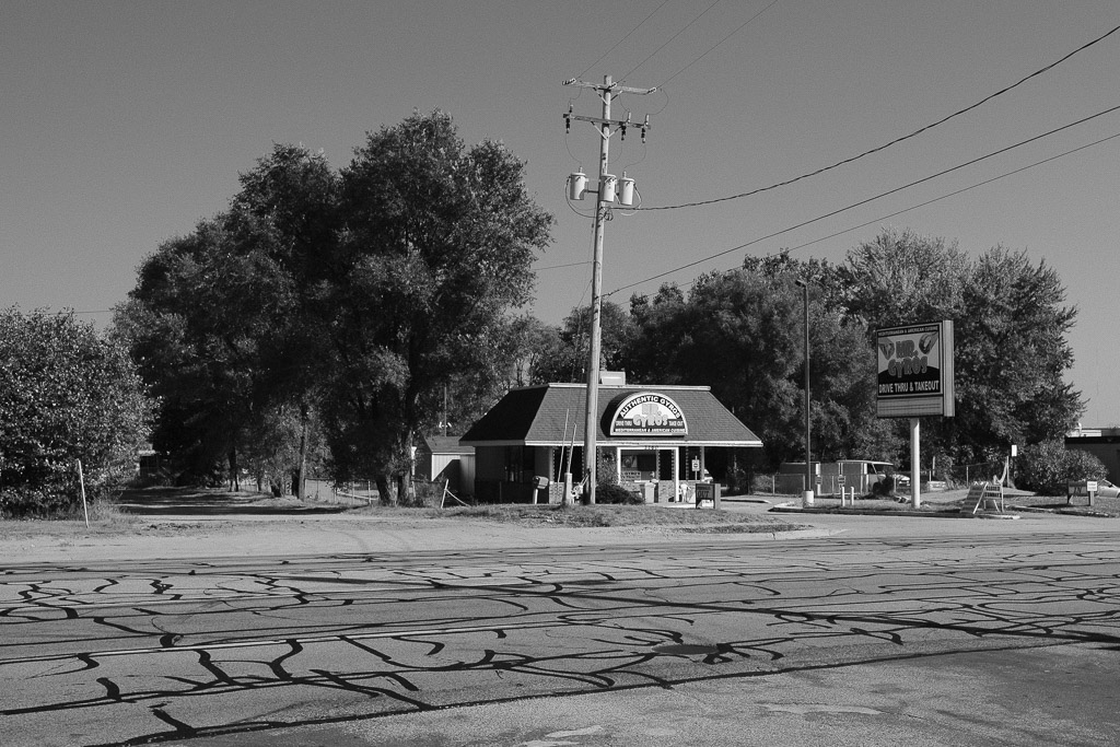 Mr. Gyros (2017) Jack included in Photography Thursday, Sep 21, 2017 33 words One minute My Gyros My favorite Gyro place doesn’t look like much. This is straight out of the X-Pro2 using the nifty new Acros filter. I like the black lines on the road.