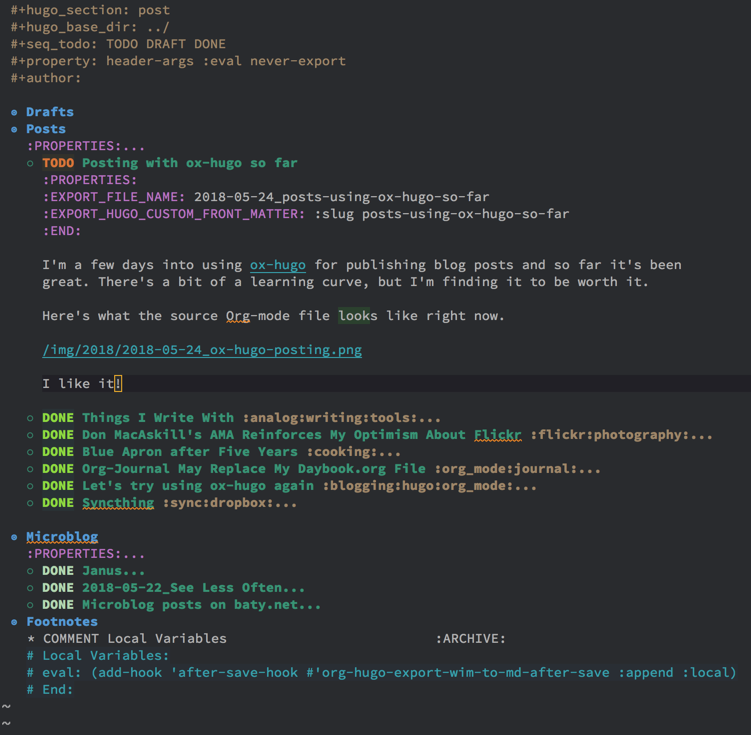Posting with ox-hugo so far