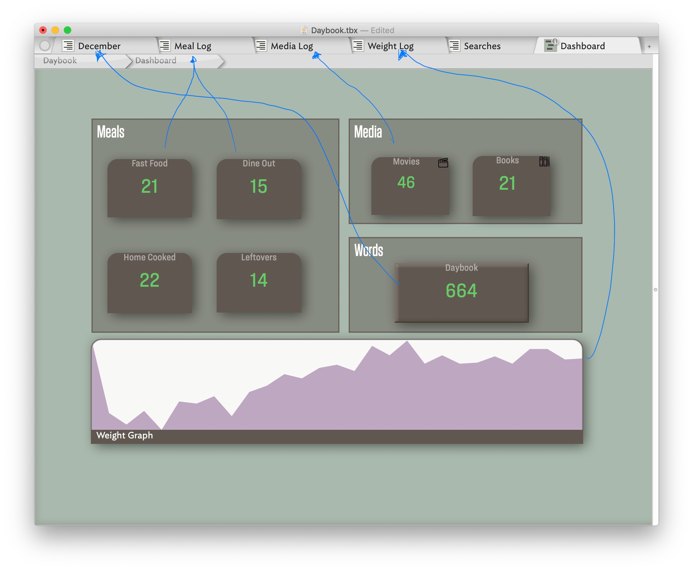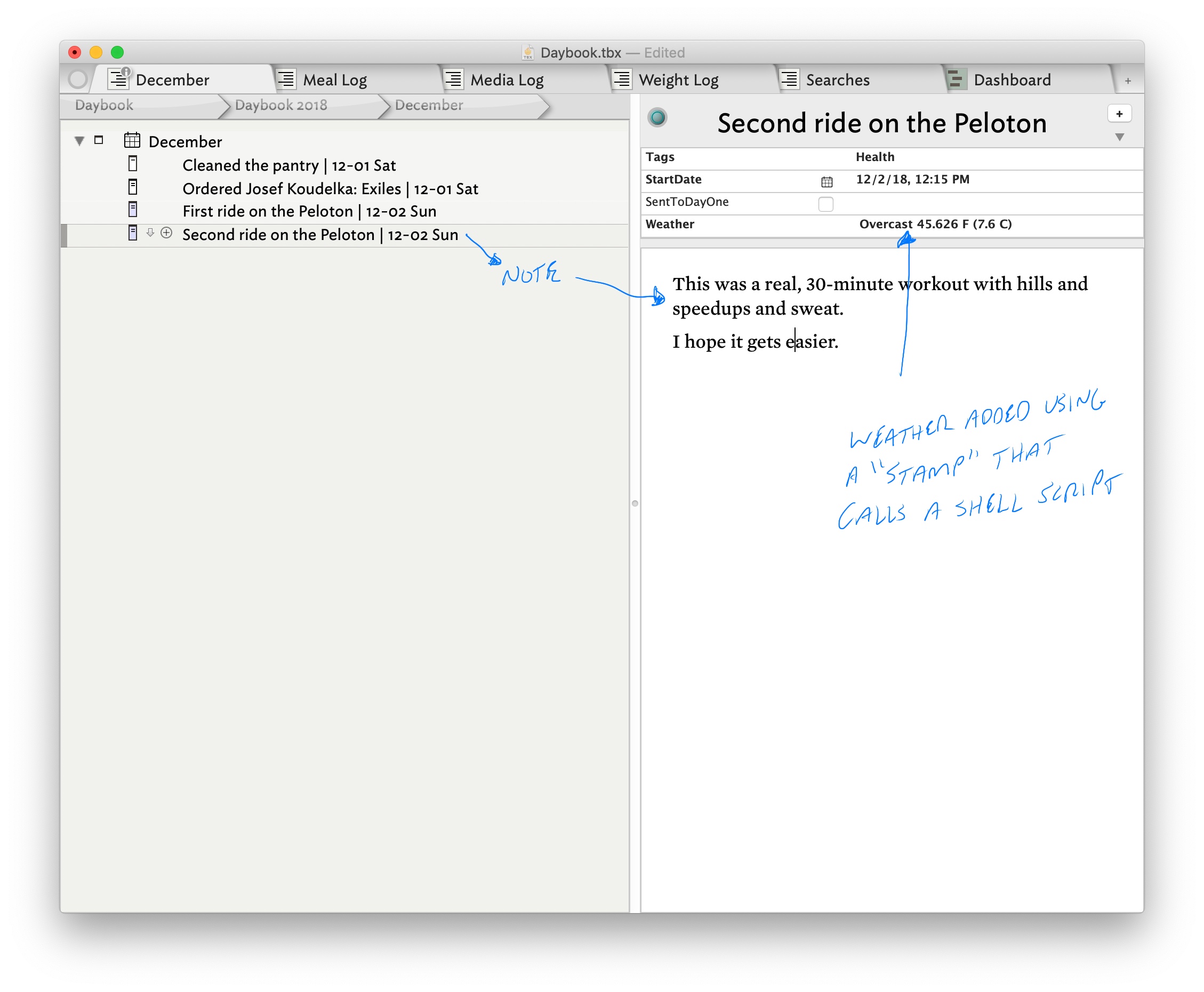 A quick tour of my Tinderbox Daybook