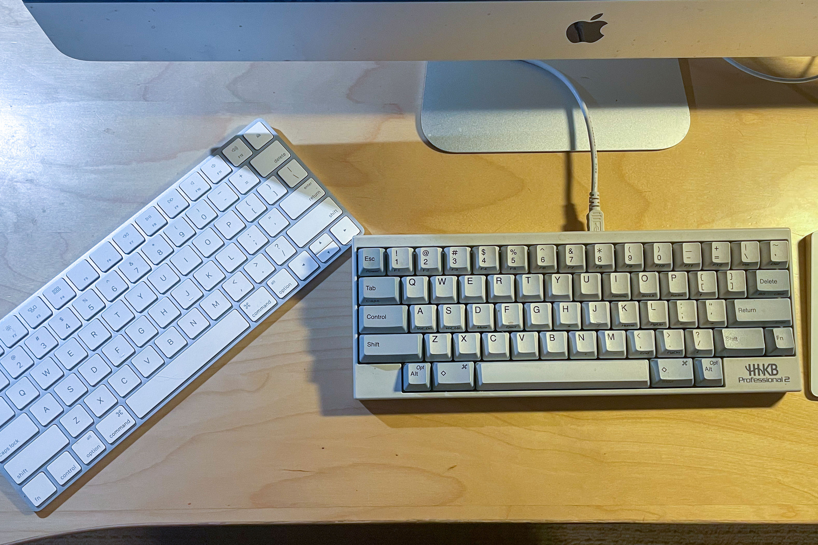 I wanted to reduce that friction, but I missed the HHKB immediately. It’s weird because I’m entirely fine using the MacBook keyboard but at the iMac I can’t help but wish I was using the HHKB.